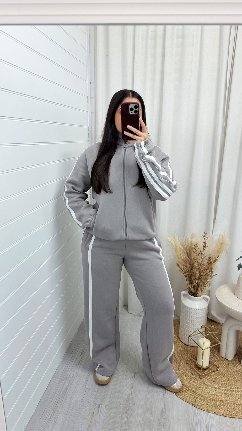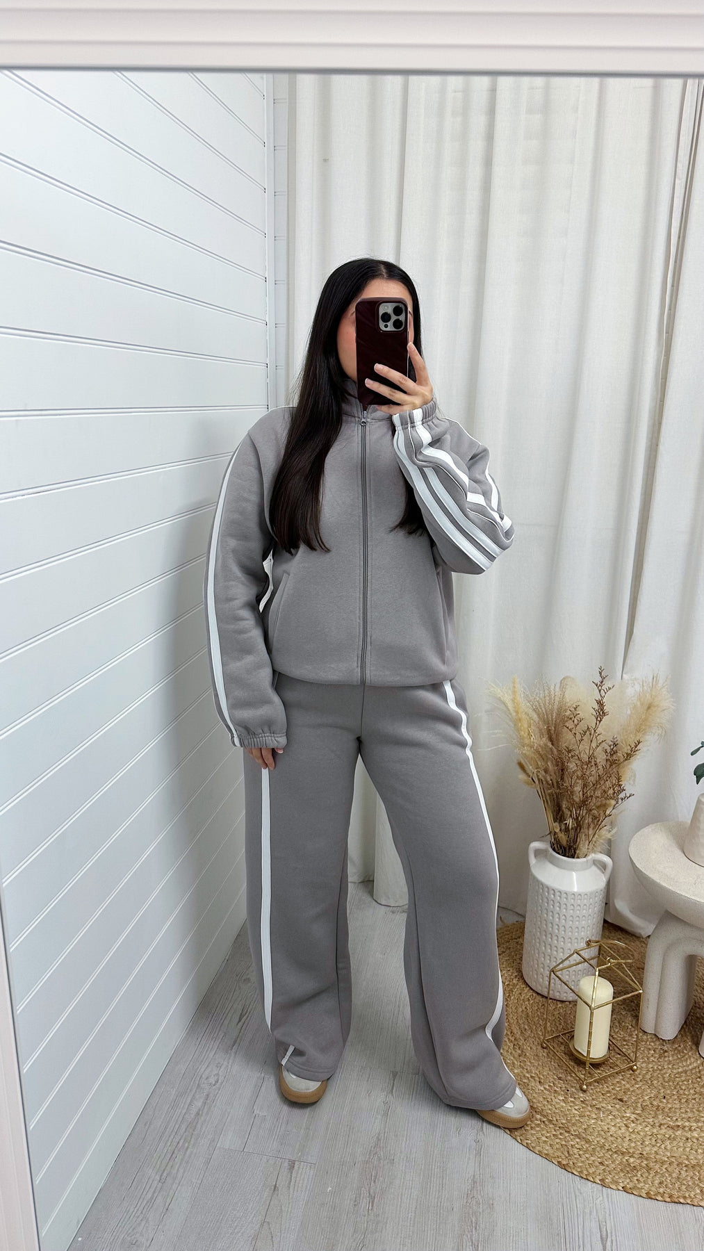 Stripe Jacket and Wide Leg Joggers Tracksuit - GREY
