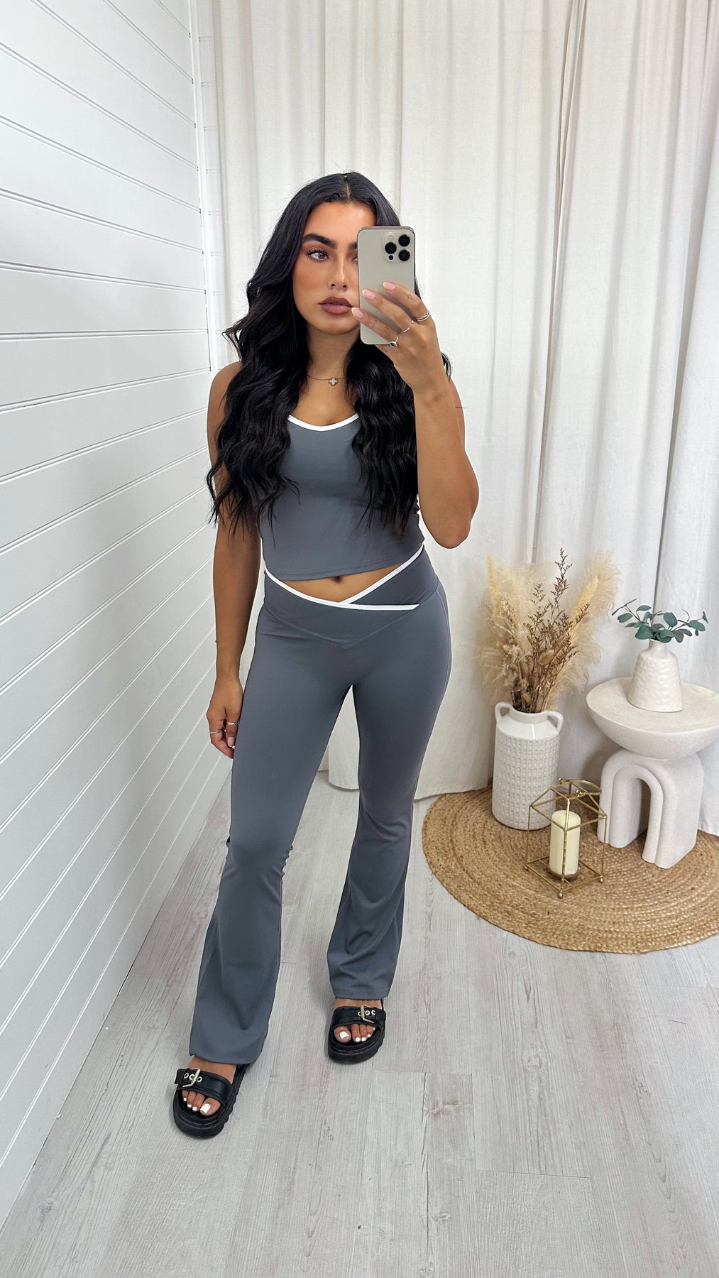 Wrap Over Flares and Padded Tank Top Co-Ord - DARK GREY