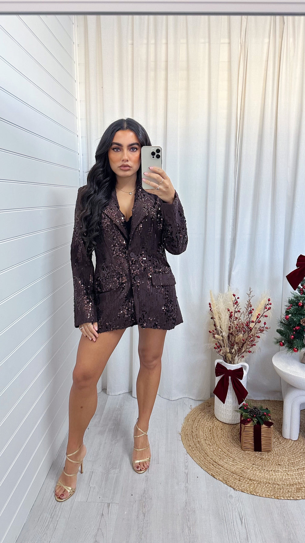Sequin Embellished Tailored Blazer - BROWN