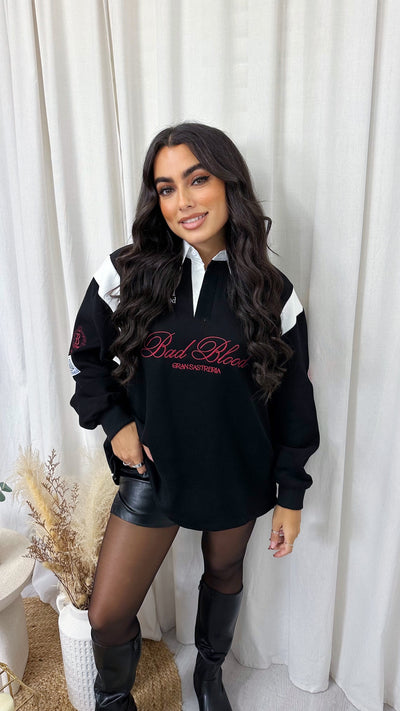 'Bad Blood' Embroidered Slogan Collared Sweatshirt - BLACK