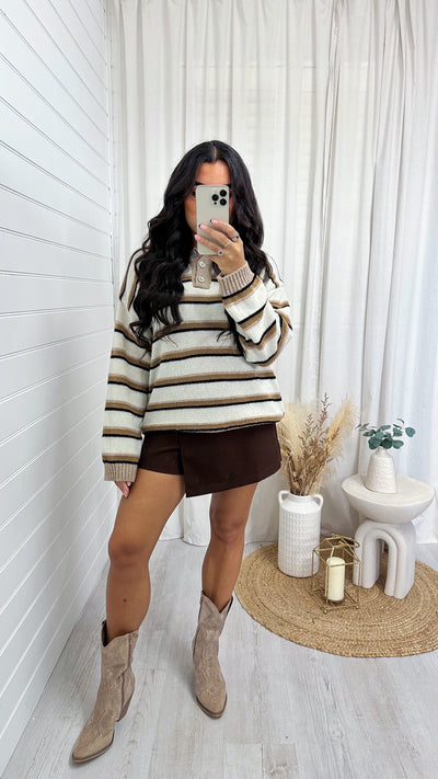 Folded Bardot Rhinestone Embellished Top - BROWN