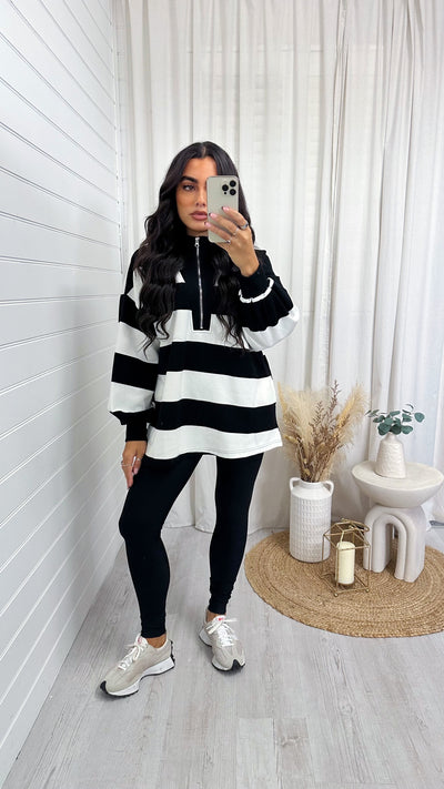 Stripey Block Colour Half Zip Sweatshirt - BLACK