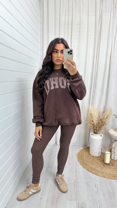 Ribbed Body Sculpt High Waisted Leggings - BROWN