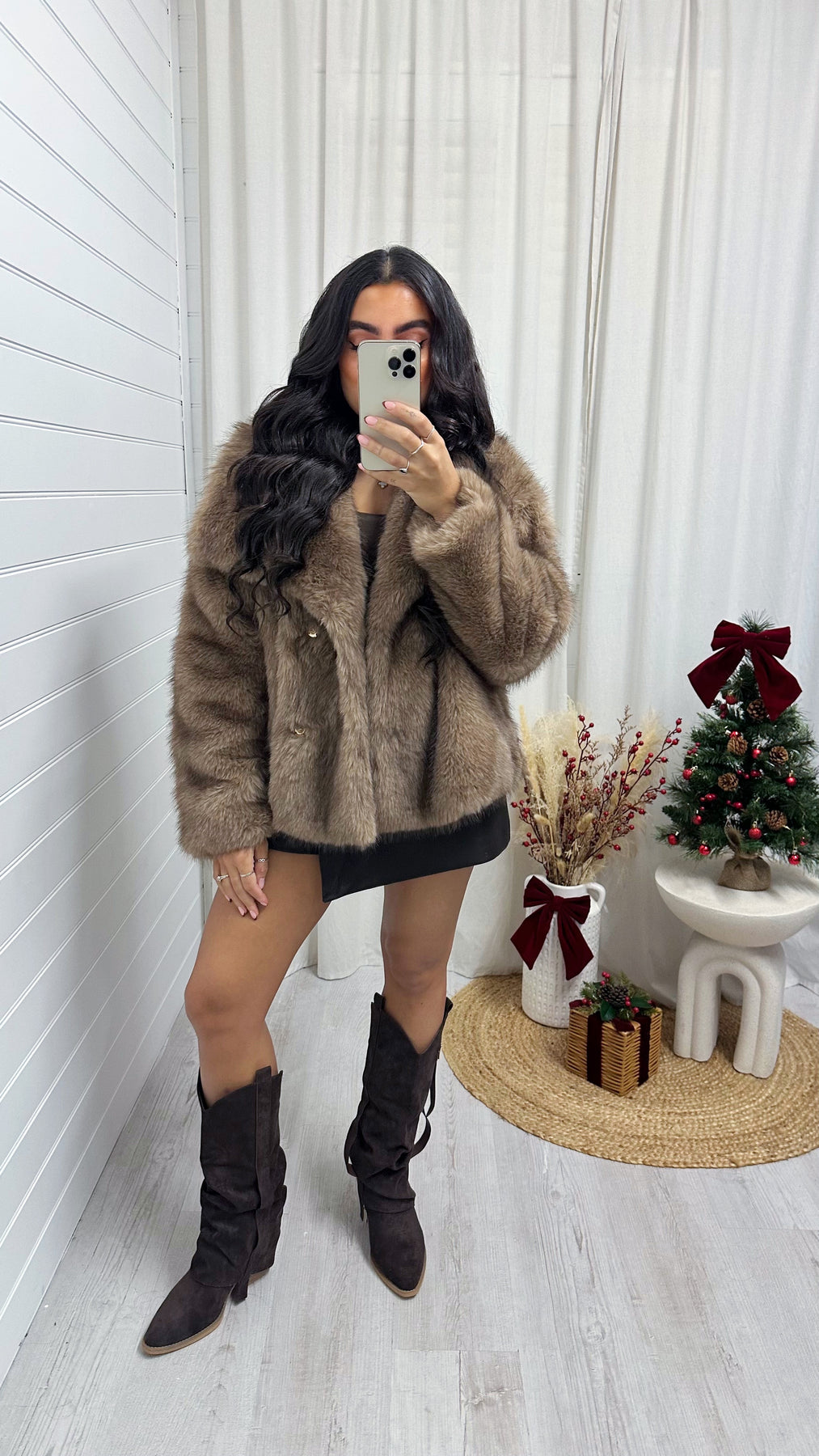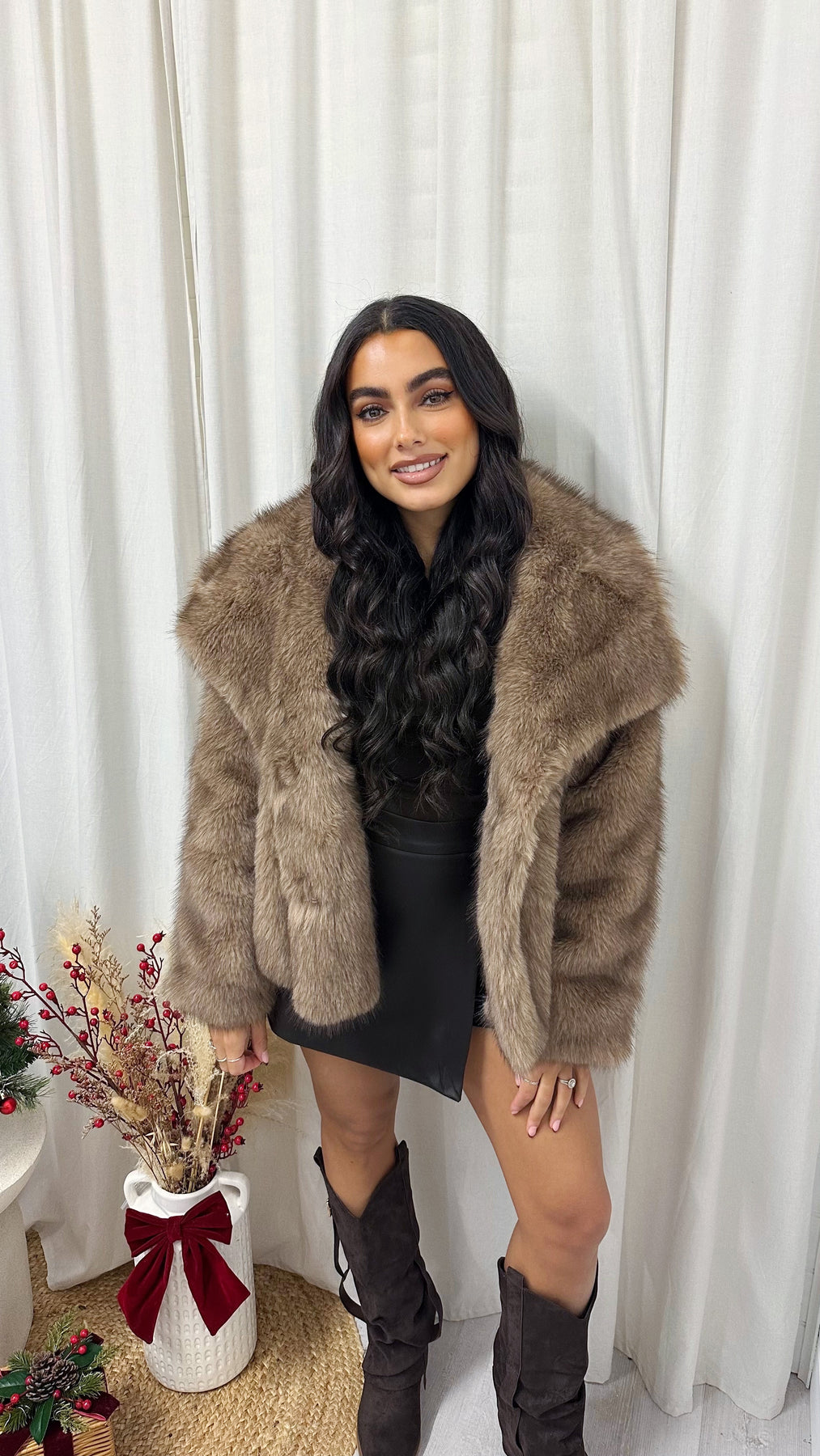 Oversized Lapel Faux Fur Coat - CARAMEL
