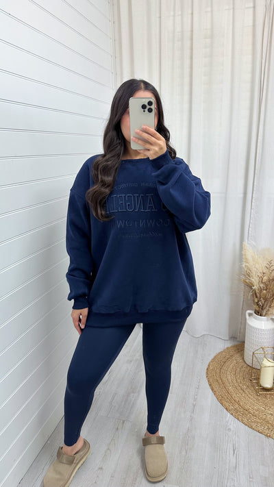 Los Angeles Embroidered Fleece Lined Sweatshirt - NAVY