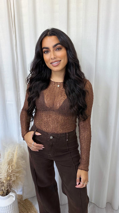 Leopard Print Mesh Long Sleeve Top - BROWN