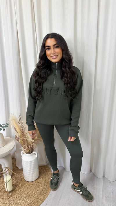 New York Embossed Half Zip Sweatshirt - KHAKI