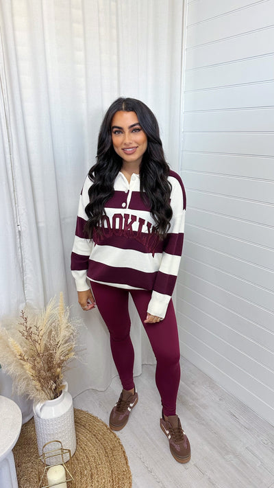 Stripey Soft Knitted Brooklyn Jumper - WINE