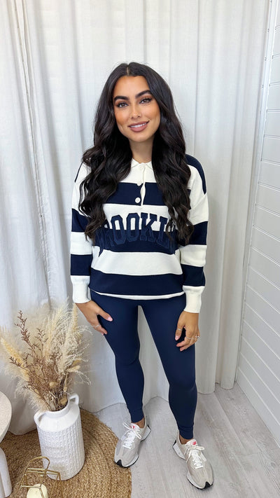 Stripey Soft Knitted Brooklyn Jumper - NAVY
