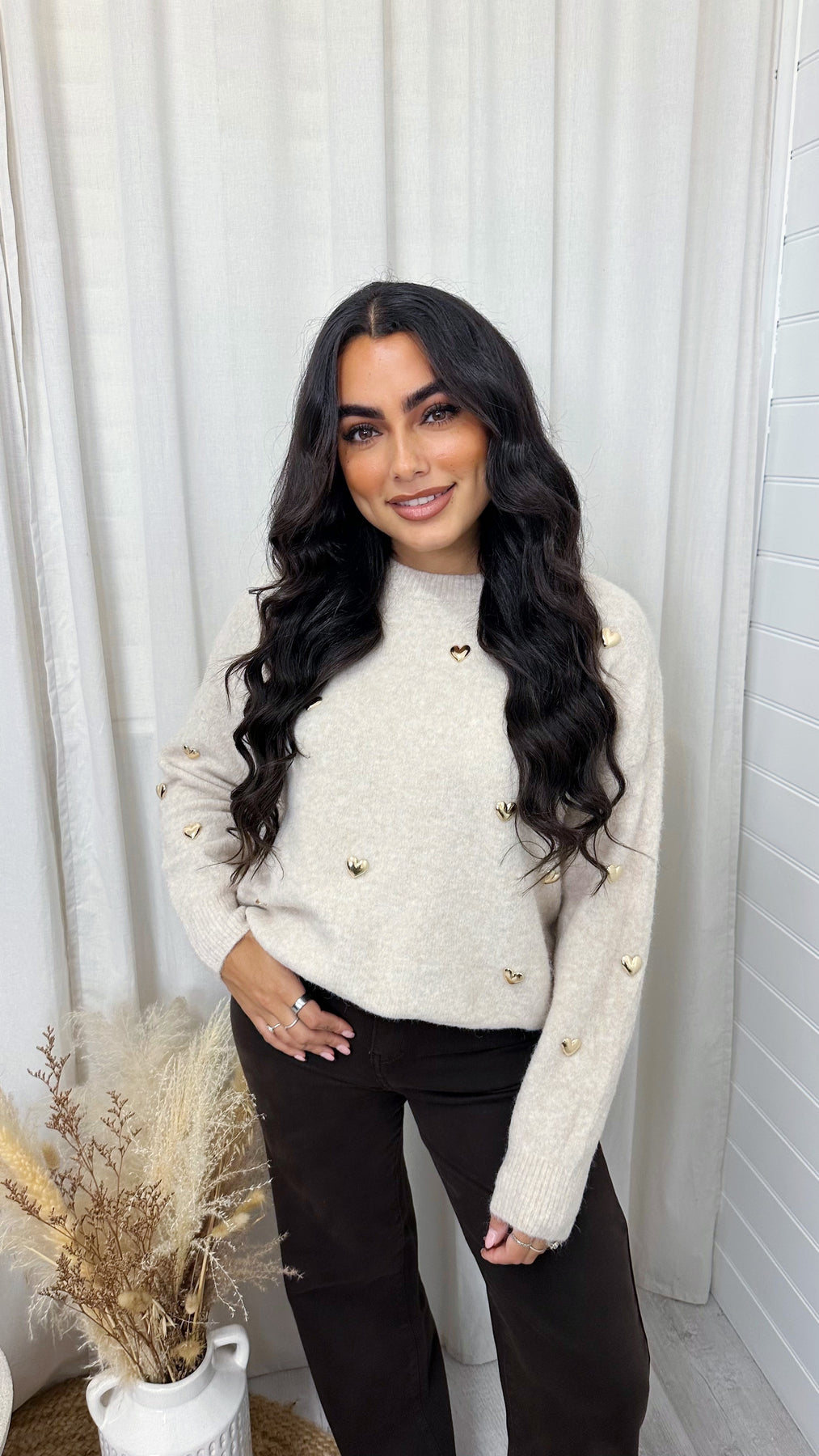 3D Gold Love Heart Woollen Jumper - BEIGE