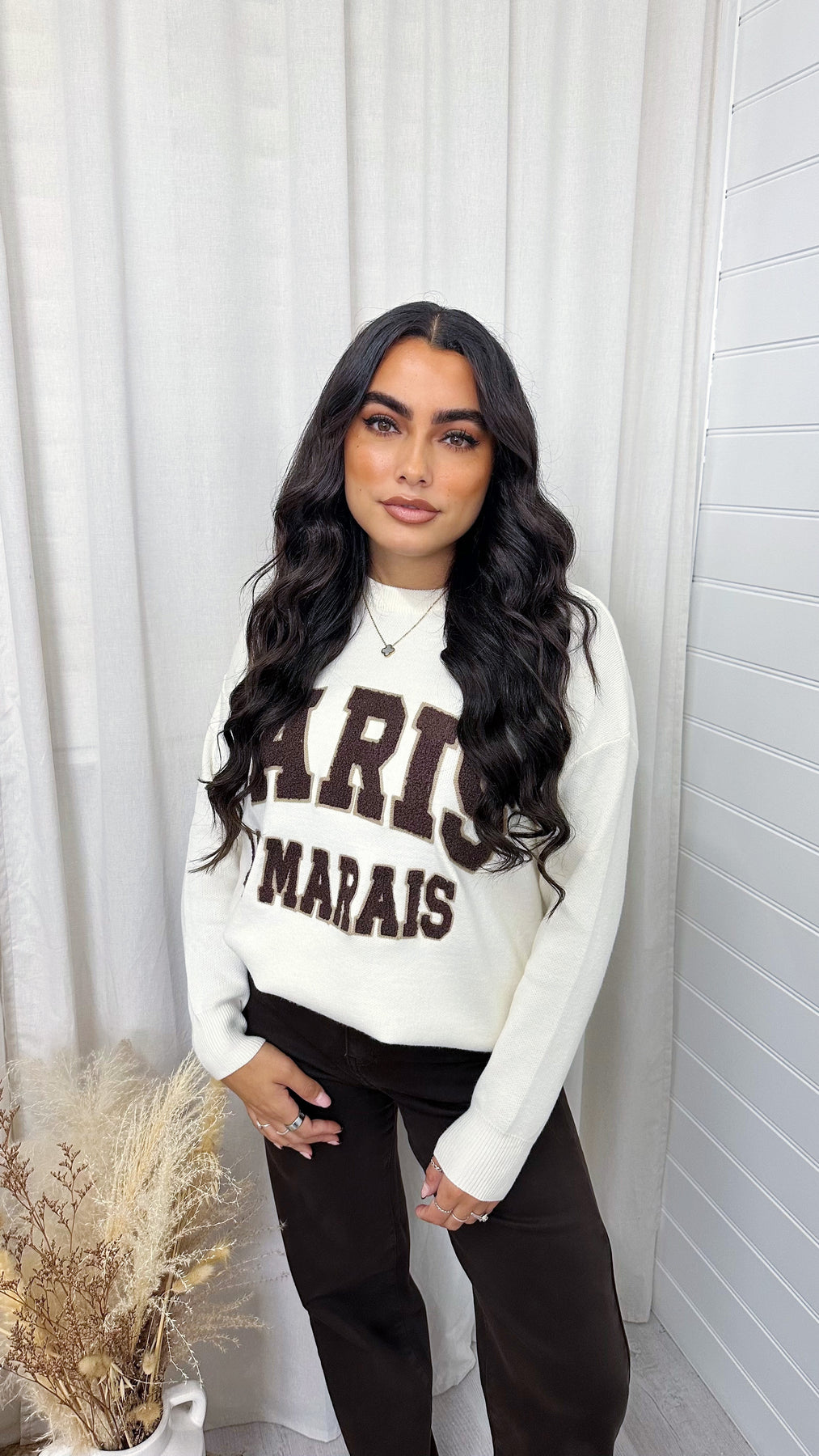 PARIS Graphic Slogan Knitted Jumper - BEIGE