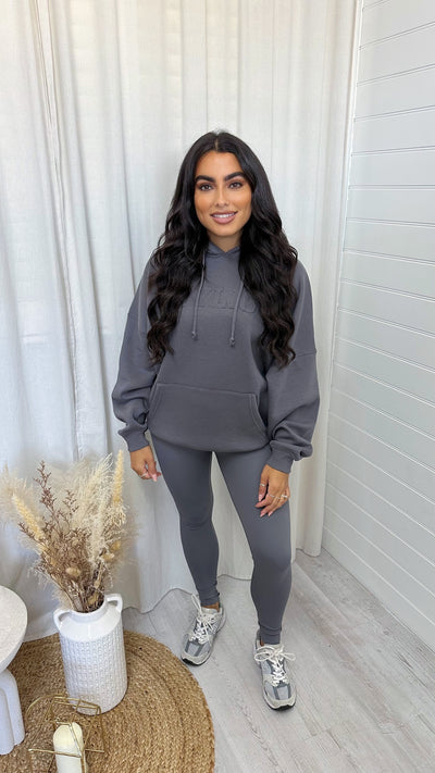 Embossed Stylist Oversized Hoodie - CHARCOAL