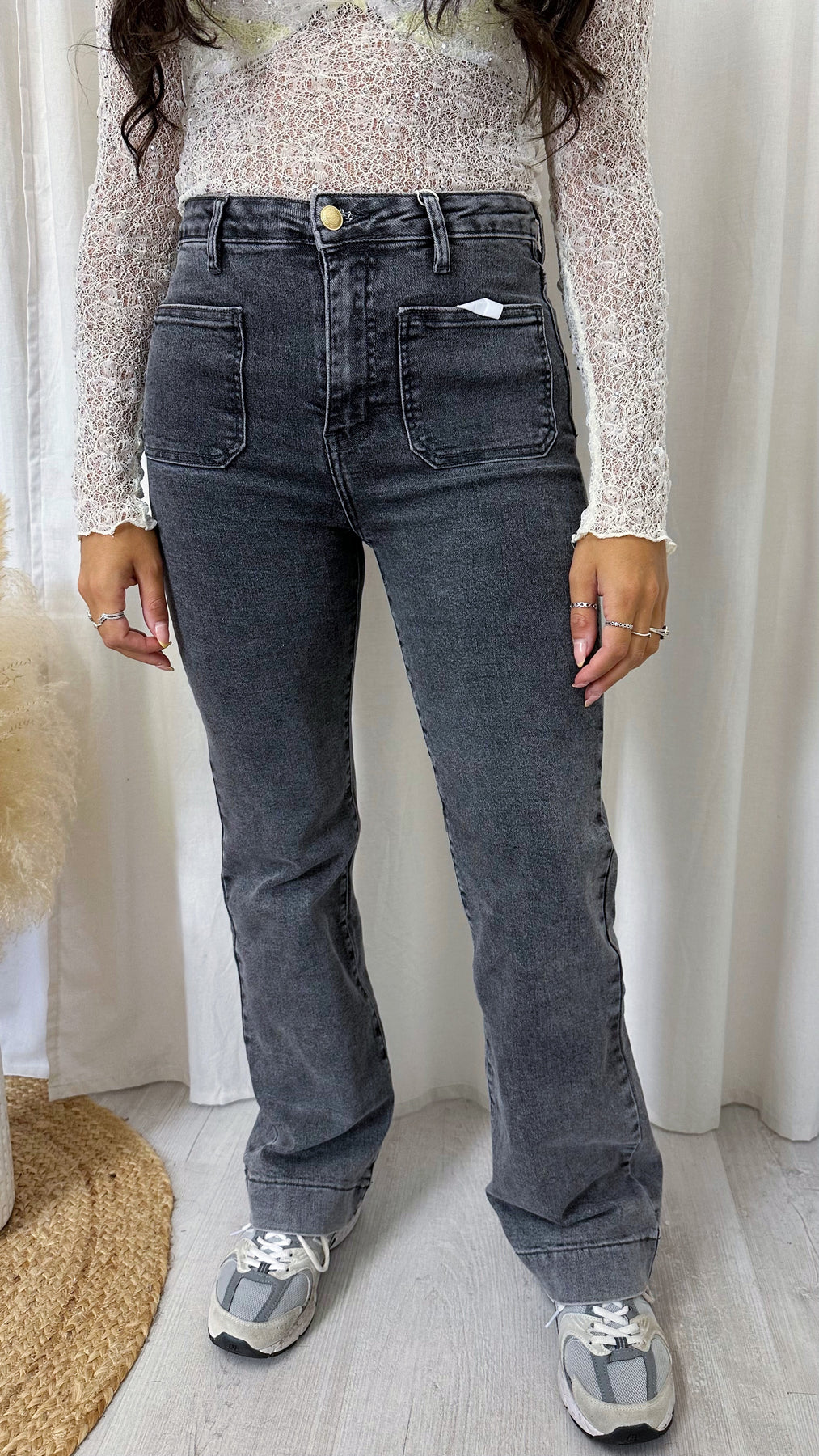 Front Pocket Boot Cut High Waisted Jeans - CHARCOAL GREY