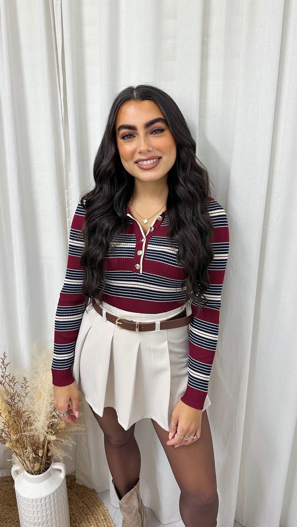 Constrast Stripe Knitted Bodysuit - WINE